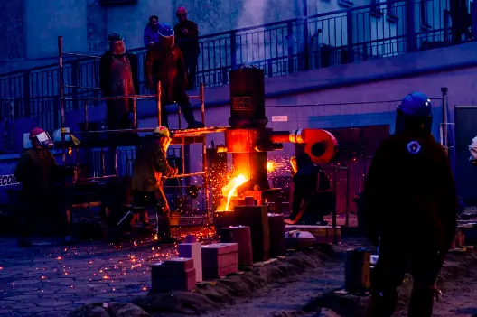 4. Pouring the Metal: The mold is heated up, and molten carbon steel is poured into the mold cavity. The metal is allowed to cool and solidify.